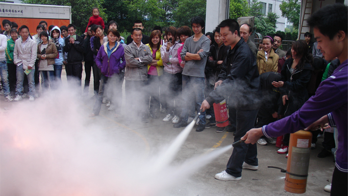 員工在操作如何使用滅火器
