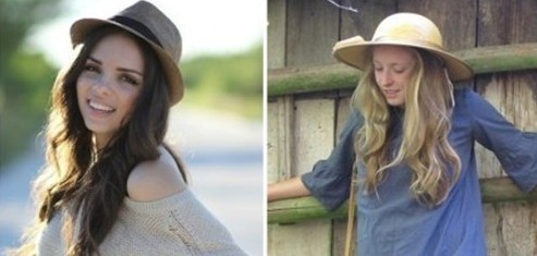 這兩款帽子,前一款草帽帶一些狂野氣息,亞麻色的帽子,很適合夏天的感覺,后者則是很田園,可以在帽檐上別一朵小花,更加富有春夏的氣息。