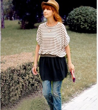 這款時尚草編帽的修飾臉型作用NO.1!搭配齊劉海和隨風飛舞的發絲,收縮了臉部的寬度,而且搭配休閑裝扮它還會調節你的全身比例!