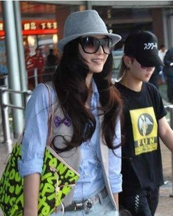 范冰冰選擇一頂灰色薄呢春季帽子搭配牛仔裝,既符合早春稍帶寒意的天氣又與上身的灰色馬甲形成呼應。