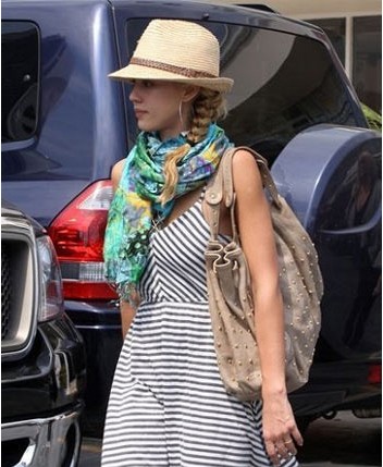杰西卡阿爾達的街拍向來為人所稱道,草編巴拿馬帽+黑白條紋棉質(zhì)長裙,隨意中流露氣質(zhì)。草編帽是明星們一直鐘愛的帽子款式,手工的氣息彰顯著帽子的與眾不同,你也看可以試試哦。