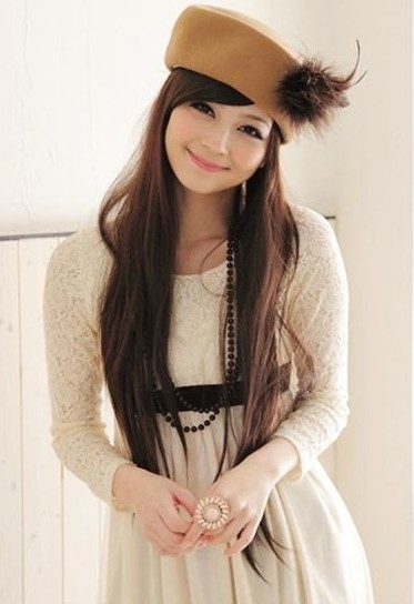 絨質毛質帽+斜劉海長直發,日系自然萌甜美款,打造百分百優雅氣質,一代青春玉女掌門人呼之欲出。