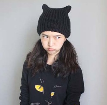 羊角形狀的賣萌針織帽看起來就非常的可愛,再加上豐富的面部表情。一件加菲貓的長袖體恤衫,走到哪里都是一個十足的萌女。