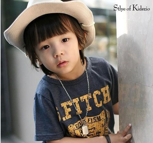 大大的眼睛,迷茫的眼神,有沒有覺得很有小王子的氣質呢!小孩帶的童帽,并不一定只有棒球帽,你看,這頂咖啡色的小禮帽,就把孩子小大人一般的無邪襯托出來了;藏青色的短袖,帶著小首飾,淺色而個性的牛仔帽戴在孩子的頭上別有一番滋味。