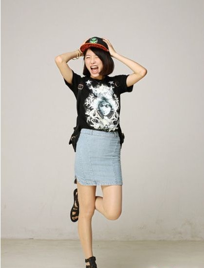 玄色人物圖案T恤搭配牛仔包臀裙街頭范十足,加上帥氣的棒球帽加分不少,時髦涼鞋展現(xiàn)美眉的時尚功力,讓頭頂“發(fā)亮”果然是街頭風(fēng)妝容的盡招。