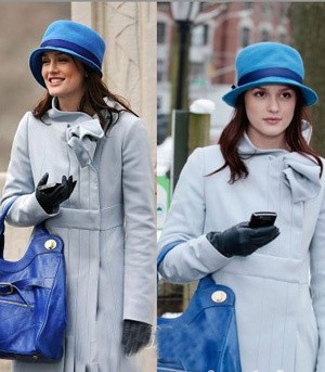 緋聞女孩的熱播,雖然更大的看點(diǎn)是狗血的劇情,相信劇中女孩們的搭配,也是許多女生的心頭好,B身穿淡藍(lán)色大衣,淑女的線條和腰身,內(nèi)搭淡藍(lán)色圓點(diǎn)短裙,這樣一個(gè)秋冬的街頭,難免顯得單薄,聰明的搭配了水藍(lán)色禮帽的她看起來(lái)是那么的甜美,為了不讓帽子看起來(lái)孤單,與之搭配的同色手包令整體搭配更顯明媚一致。